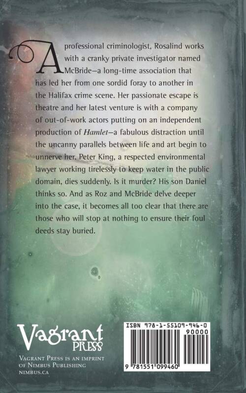 A professional criminologist, Rosalind works with a cranky Private Investigator named McBride–a long-time association that has led her from one sordid foray to another in the world of crime. Her passionate escape is theatre and her latest venture is with an ad hoc company of out-of-work actors putting on a production of Hamlet. Ros finds her work on Shakespeare’s language to be a fabulous distraction until the uncanny parallels between life and art bring her face to face with murder.