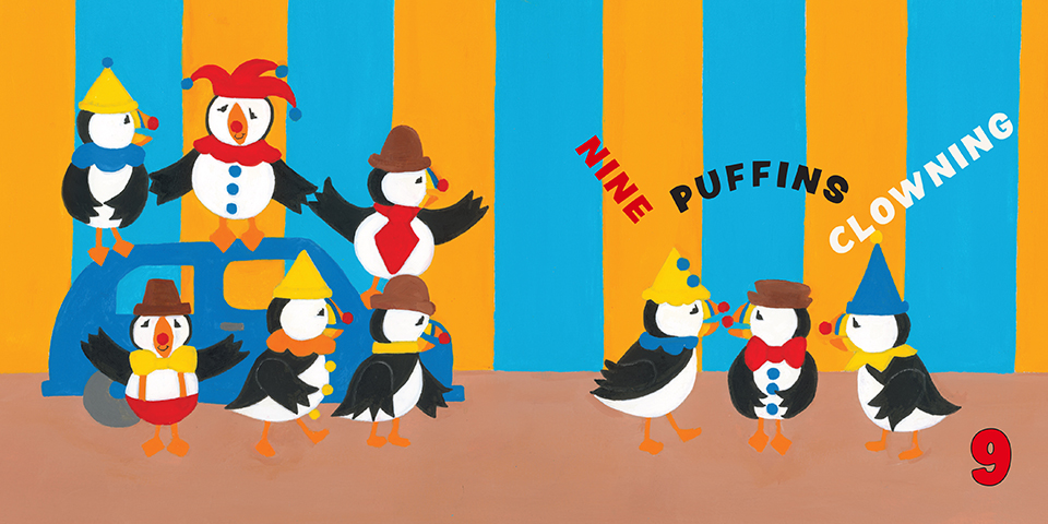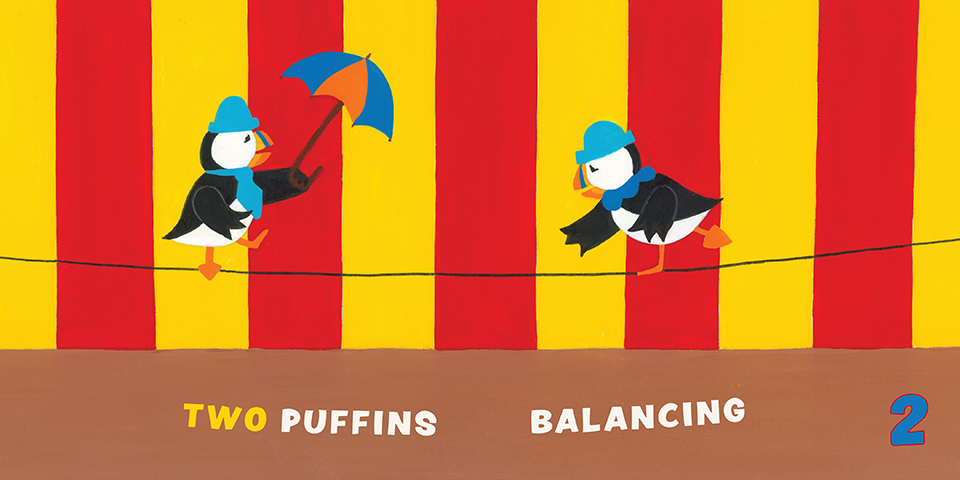 Puffin Circus 1 2 3, how many puffins do you see?
